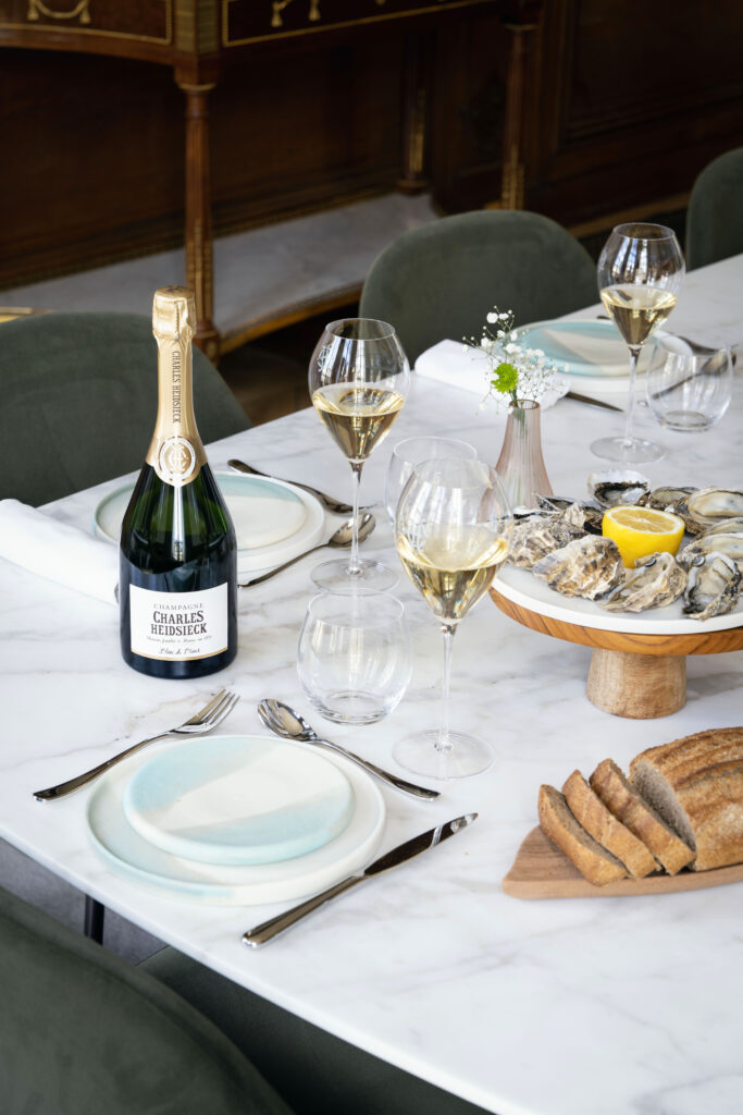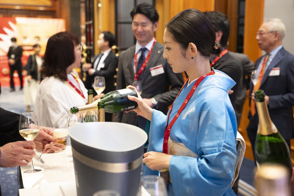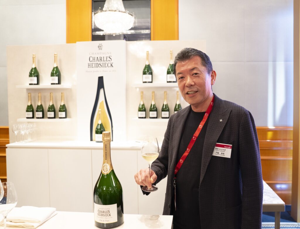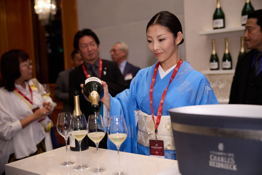 お祝いムードをさらに高めたのは、オフィシャル・シャンパーニュとして振る舞われたシャルル・エドシック。東京の星付きレストラン70軒以上でオンリストされており、ガストロノミーに愛され続ける存在だ。約2.3軒に1軒以上で扱われているという驚異的な浸透率を誇る。