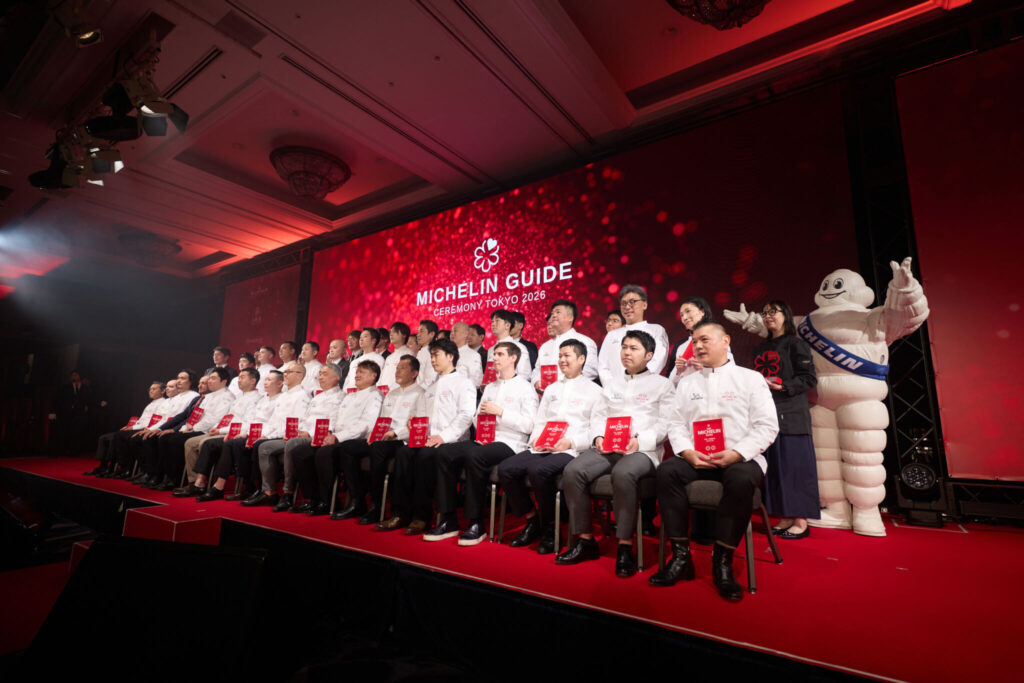 ミシュランガイド東京2026年版では、新規掲載店65軒が加わり、合計526軒が掲載された。うち、三つ星が12件、二つ星が26件、一つ星が122件、ビブグルマンは114件、セレクテッドレストランは252軒、ミシュラングリーンスターは13軒だ。東京は、世界でもっともグリーンスターの多い都市でもある。 受賞セレモニーが終了し、カクテルパーティー会場へ。ステージ上での緊張が解け、ほっとした、輝くような笑みを浮かべたシェフたちが続々と入場する。お店での調理中に見せることはないであろう笑顔が、部屋のあちこちで花咲き、なんともゴージャスで、スペシャルなオーラが漂う。スーパーシェフたちが一同に集うこの光景は、一年に一度きりだ。