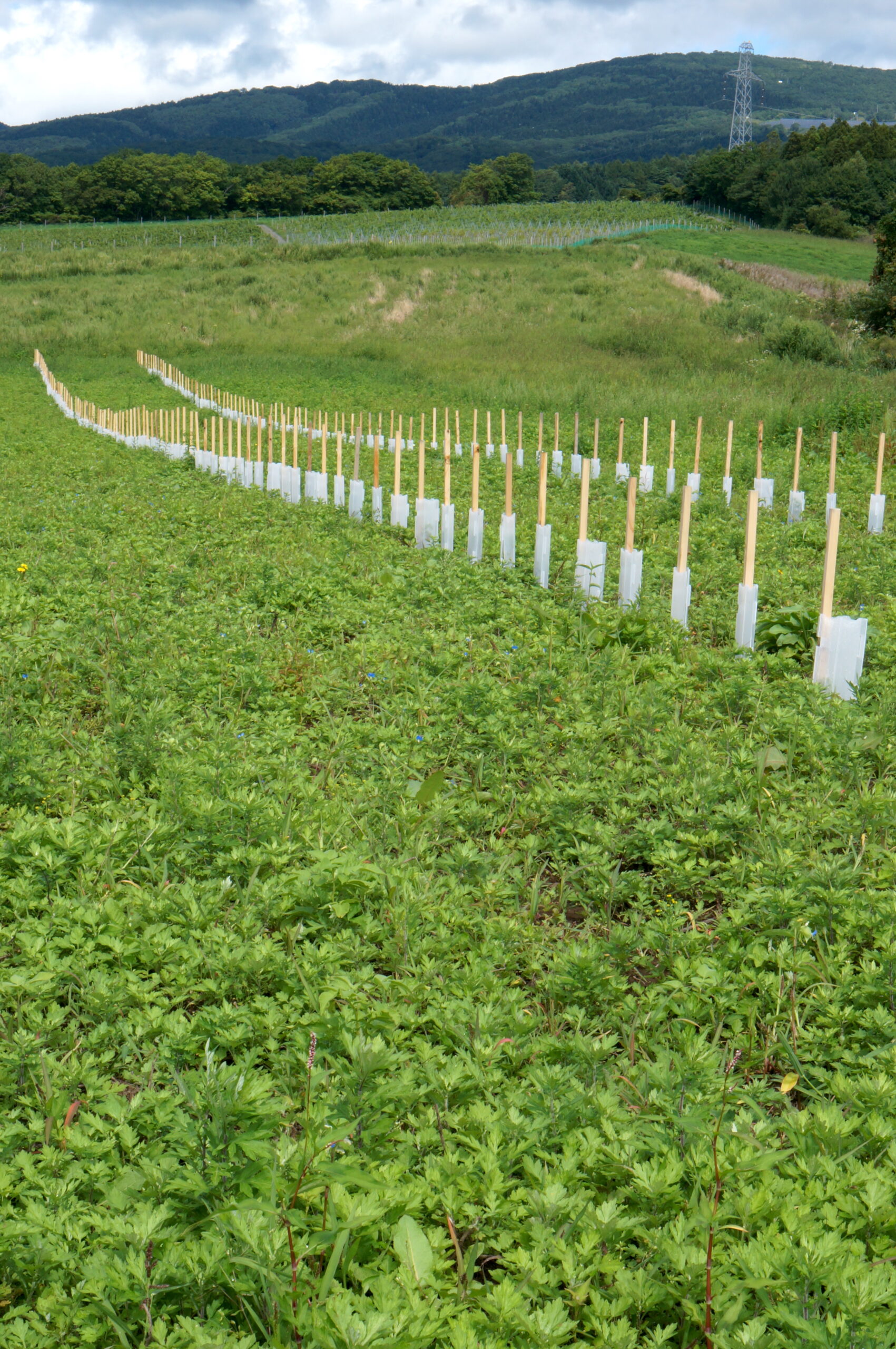- 緩やかな傾斜に植えられた若木。