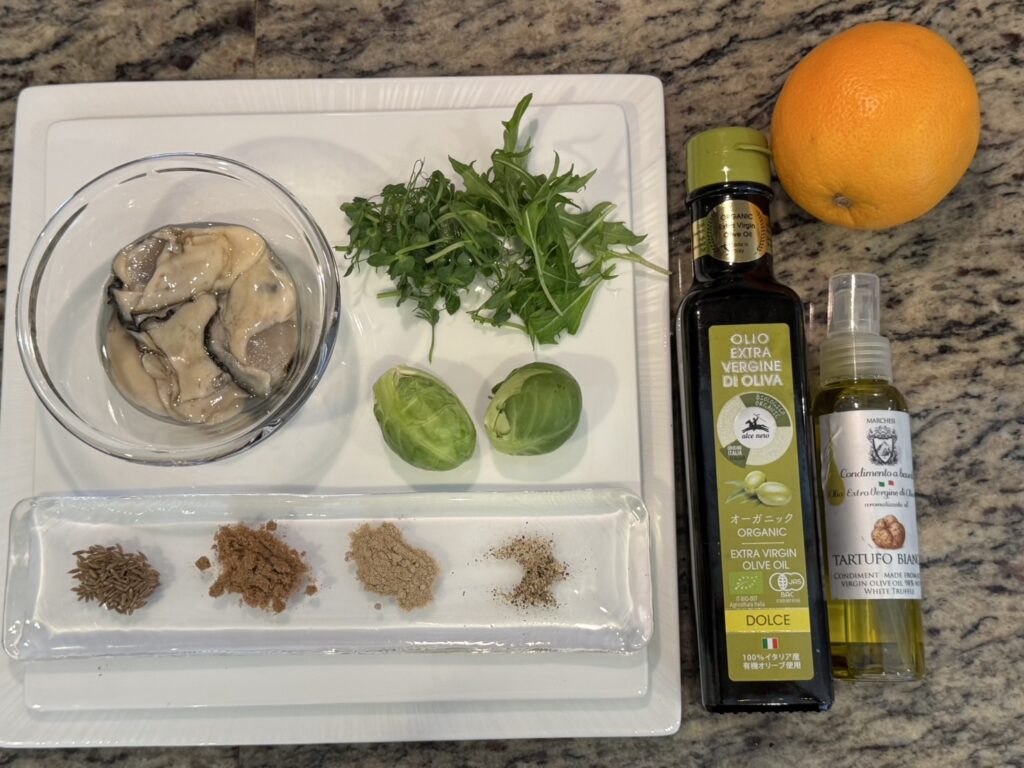 ワインに合う簡単レシピ Vol.67「スパイスとオレンジの皮で香りづけした牡蠣と芽キャベツの炒め物」
