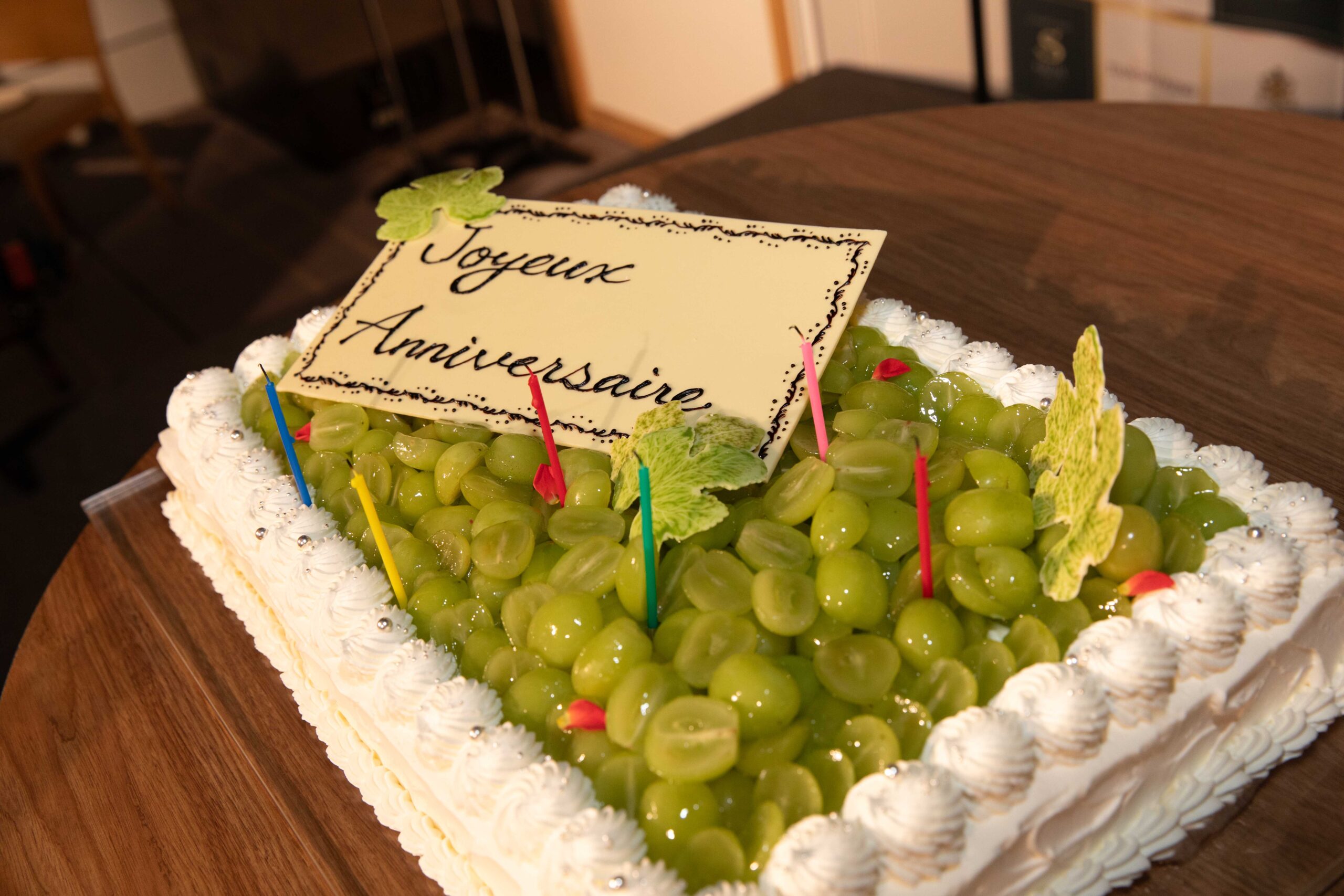 メインの壇上に設られたスクリーンには、ラック・コーポレーションとの30年間の軌跡である懐かしい写真が次々と映し出され、多くの参加者が楽しそうに見入っていた。盛大に行われたドゥポン氏の還暦お祝い会。一体何本のボトルが開いたのかわからないが、皆の笑顔が花咲いた。今の時代は還暦でもまだまだ若い。ドゥポン氏は訪日記録をさらに塗り替えて、サロン&ドゥラモットの魅力を伝え続けていくに違いない。