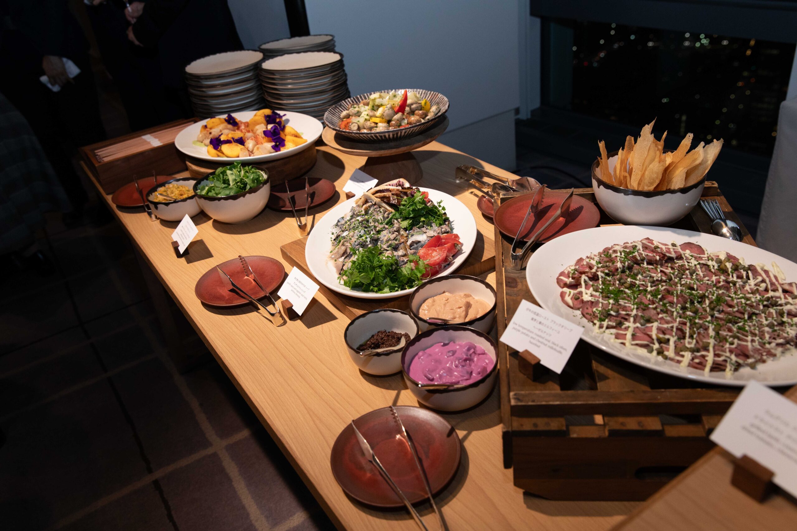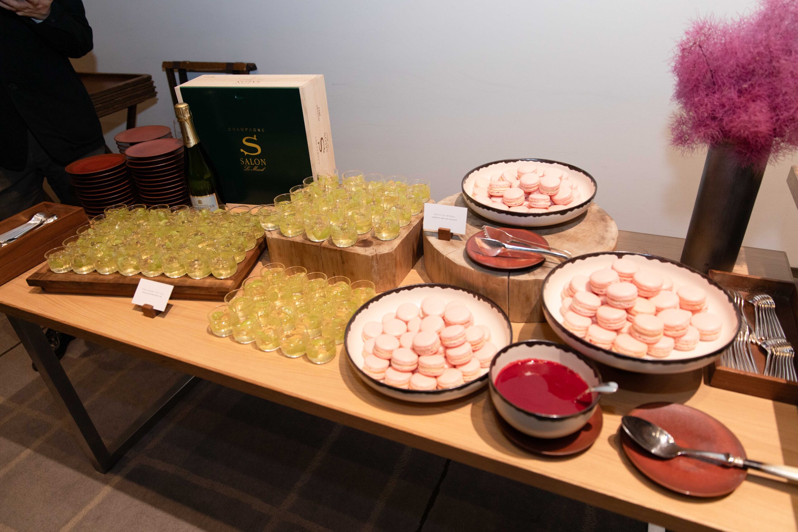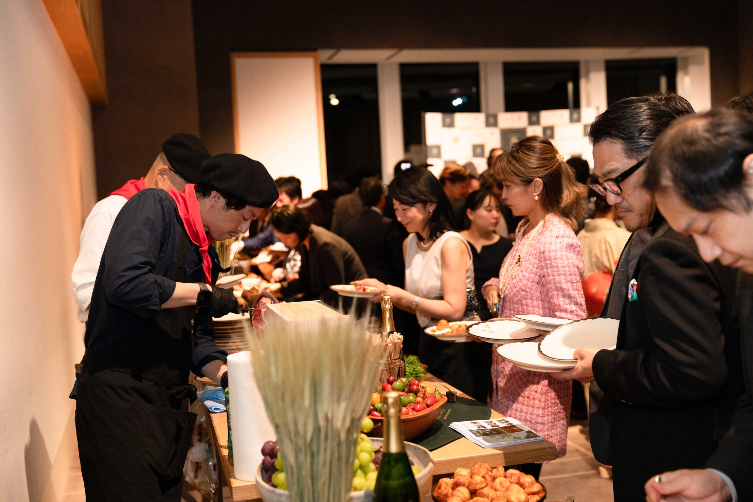 今回、会場でまず供されたシャンパーニュは「ドゥラモット ブリュットNV」、そして「ドゥラモット ブラン・ド・ブラン ミレジメ 2018」、「ドゥラモット ブリュット・ロゼNV」。これらに合わせてアンダーズ東京の質の高い料理の数々が並んでいたのだが、ドゥポン氏がどうしても参加者の皆さんとシェアしたいとこだわった生ハムがある。それが「ピエール・オテイザ」。わざわざこの生ハムを輸入している商社、鳥新のスタッフの方がブースに張り付いて生ハムをカットしてサーヴィスしたり解説したりしていた。