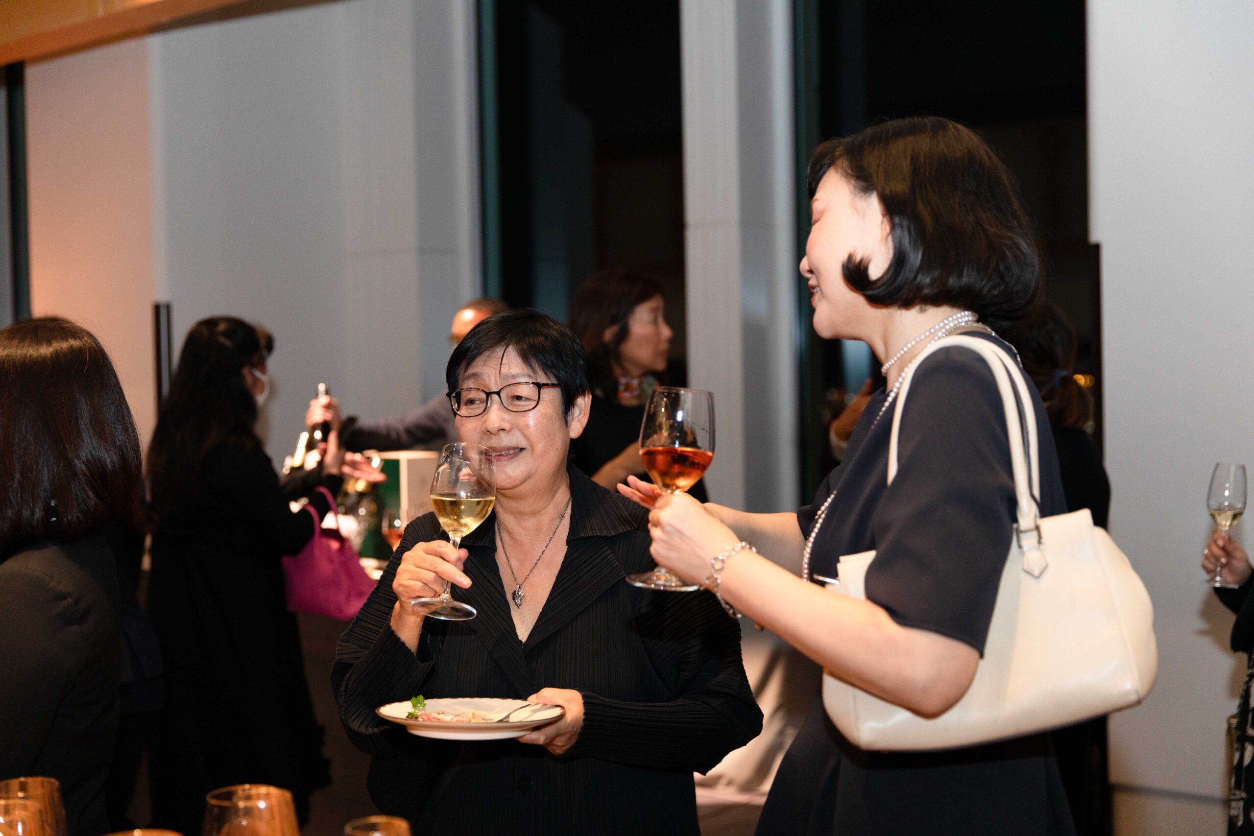 当日通訳をしてくれた元ラック・コーポレーション勤務で現在ド・モンティーユ&北海道社長の矢野映さん(左)とブルゴーニュを中心としたワインを、日本をはじめ国外に向けて紹介するエージェント、ソシエテ・サカグチの坂口香織さん(右)。