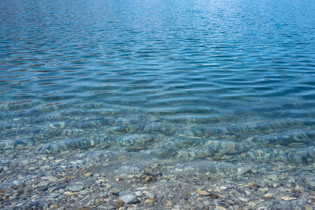 それもそのはず、この湖には一本の川も流れ込んでおらず、湖底から湧き出る水で満ちているのだという。透き通った湖底のさらに底から、長い時間を経て音もなく生まれてくる水を 眺めた。
