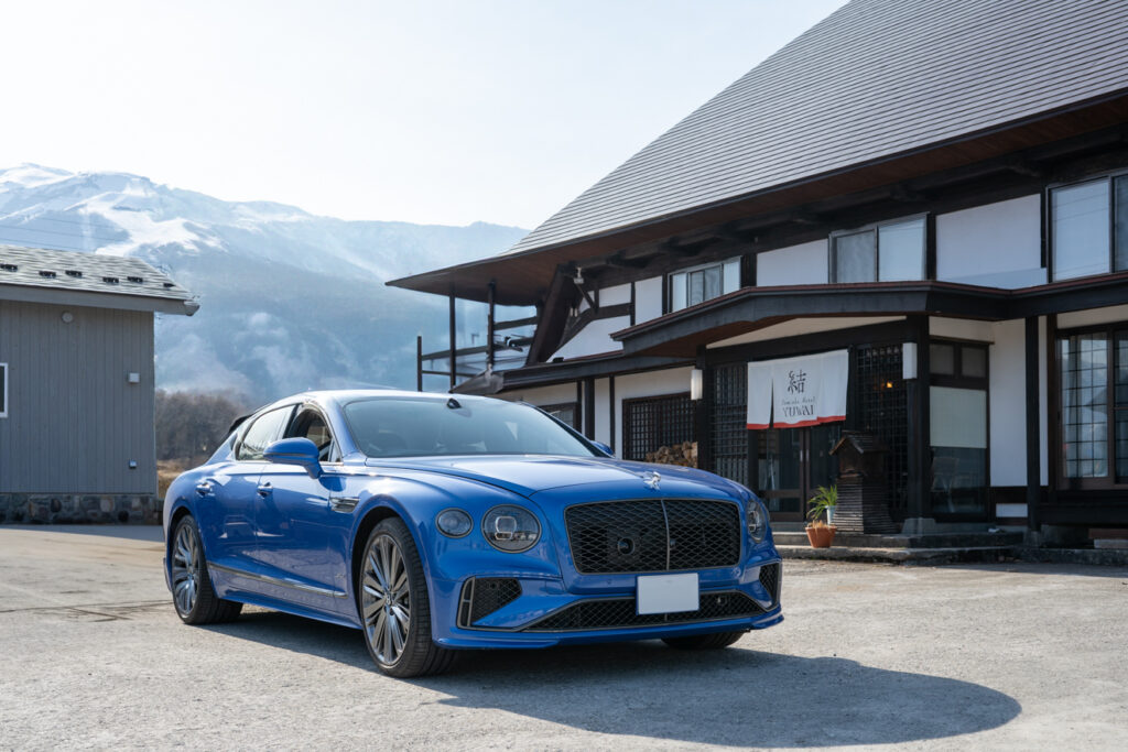 確かに響く重いドアの音が、これから始まる旅を守ってくれそうな気がした。青いベントレー・フライングスパー・ファーストエディション。4人で乗り込み、静かに出発する。中央高速をひたすら北西へ向かってゆく計画だ。