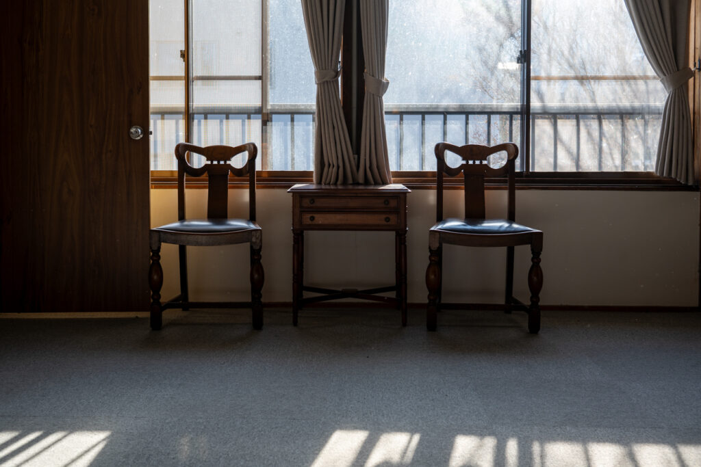 「古民家ホテル YUWAI」の2階にやわらかな午後の日が差す