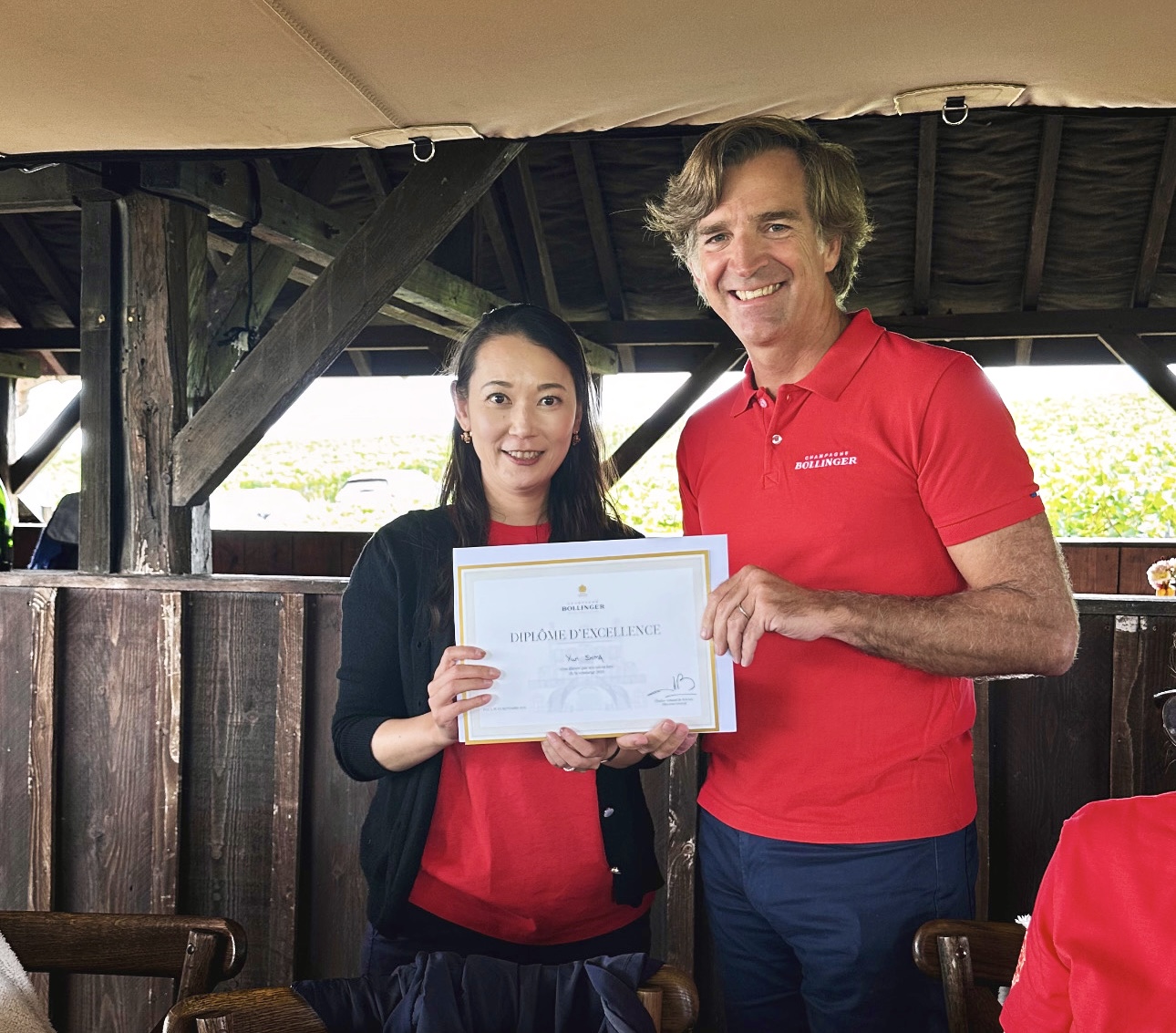 マネージング・ディレクターのシャルル=アルマン・ド・ベレネ(Charles-Armand de Belenet)さんから修了証を受領