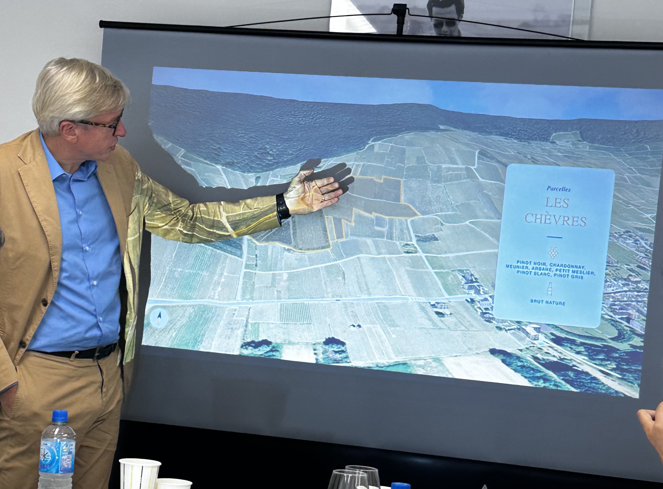 さらに近年の気候変動の影響によりブドウがより熟すようになったことも、ゼロ・ドサージュのシャンパーニュの実現を後押ししています。今回試飲した「ブリュット・ナチュール」の2015年と2018年は、両方とも暑く乾燥した年。こうした気候条件の年はシャンパーニュの長い歴史の中では異例とも言えるのですが、今後さらに加速するであろう気候変動の影響を考えると、このような年にのみ造られる「ブリュット・ナチュール」は、将来のシャンパーニュの姿を考え、「気候変動を(ワインを通して)味わう(Taste climate change)」という意味合いもあると解説します。