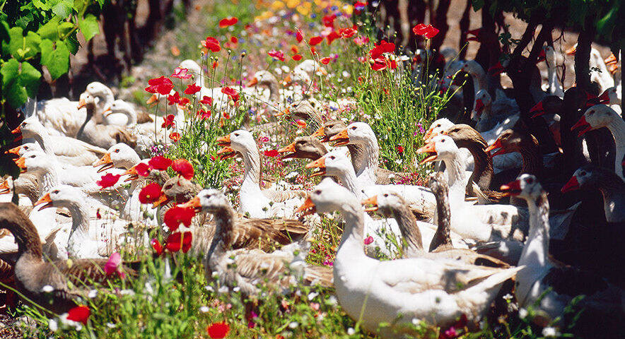 コノスルは高品質なワインを生み出すための一つの手段としてサステナブル(持続可能)農法を実施。それは肥料や害虫・病害・雑草の駆除において、自然でないものを可能な限り避ける農法。そのため、コノスルの畑にはガチョウや羊などの動物、蜜蜂や蝶などの昆虫、ハーブなどのさまざまな植物が存在し、ブドウの栽培の一助となっています。ブドウ畑に多様な生物や植物が共生することで生態系を健康に維持することがブドウの育成に好影響をもたらすという考えの基、さまざまな手法が展開されているのです。もちろんいまではそれが世界各国のワイン造りの潮流ですがコノスルは1998年から実施しているパイオニアです。コノスルのブドウ畑のうち、340ヘクタールは有機認証機関によってオーガニック畑に認定され、「オーガニック」シリーズのワインは、もちろんオーガニック認定を受けた畑で栽培した葡萄を100%使用しています。