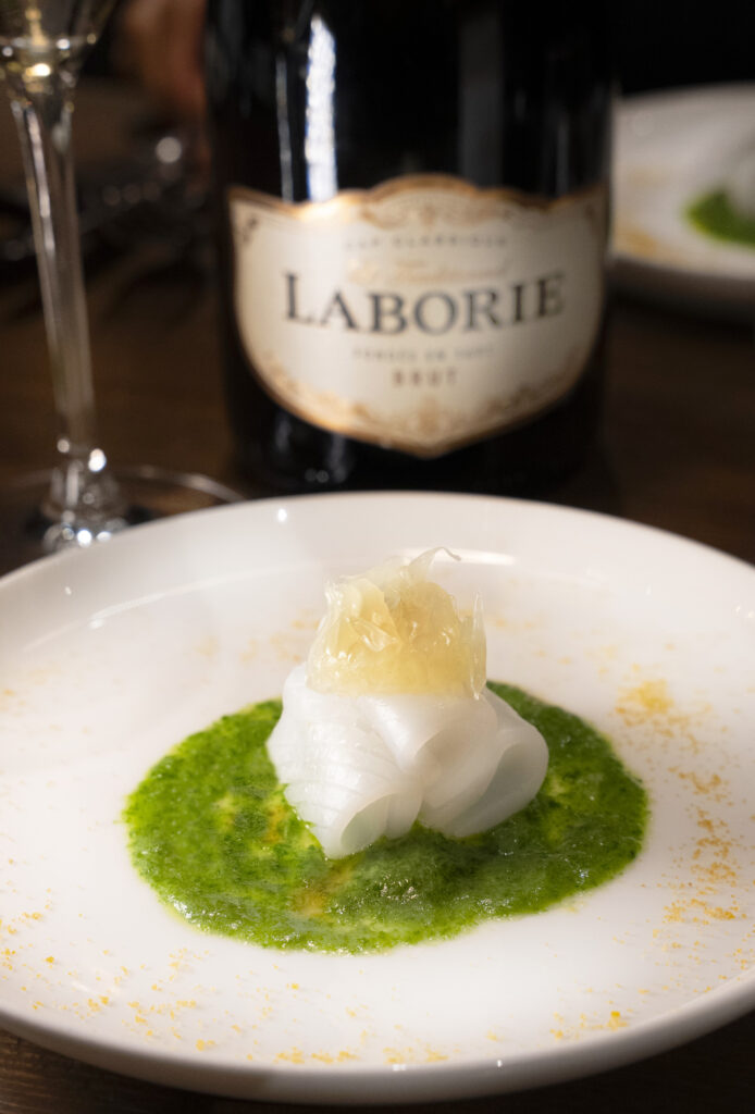 コスパ最高のスパークリングワイン、ラボリーは、アオリイカとボリューム感や香りの方向性などが似ていて、ちょうどバランス良い丸い組み合わせという印象でした。