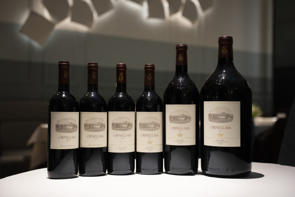 銀座のイタリア料理店「ファロ」にてお目見えした、歴代のオルネライア。最新ヴィンテージの2022年は華美さで勝負せず、豊かな表情と非常に長い余韻を特色とする。「今は若き性格俳優が、20年後には引く手あまたの渋い主役として大成」といった風情だ。