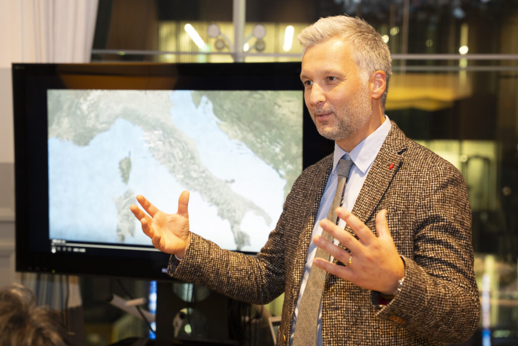 オルネッライアの生産管理マネージャーを務めるマルコ・バルシメッリさん。長期熟成向きのオルネッライアだけに、年始などの節目で飲むとすれば「エレガントな2006年」を希望、とか。